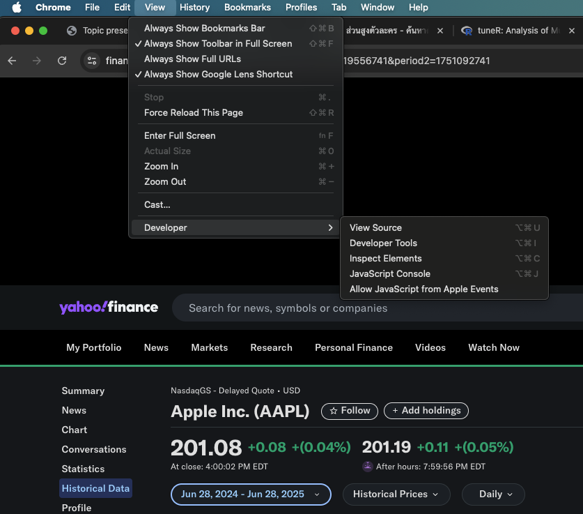 Step 7: Menu View \(\rightarrow\) Developer \(\rightarrow\) Inspect Elements