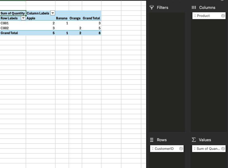 The transaction data can be copied into Excel and summarized using a PivotTable.