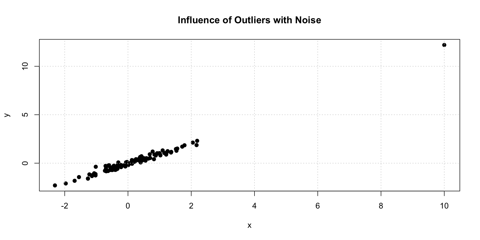 ไวต่อค่าผิดปกติ (Outliers) ค่าของ \(r\) อาจเปลี่ยนแปลงอย่างมากหากมี ค่าผิดปกติ (outliers) ในข้อมูล