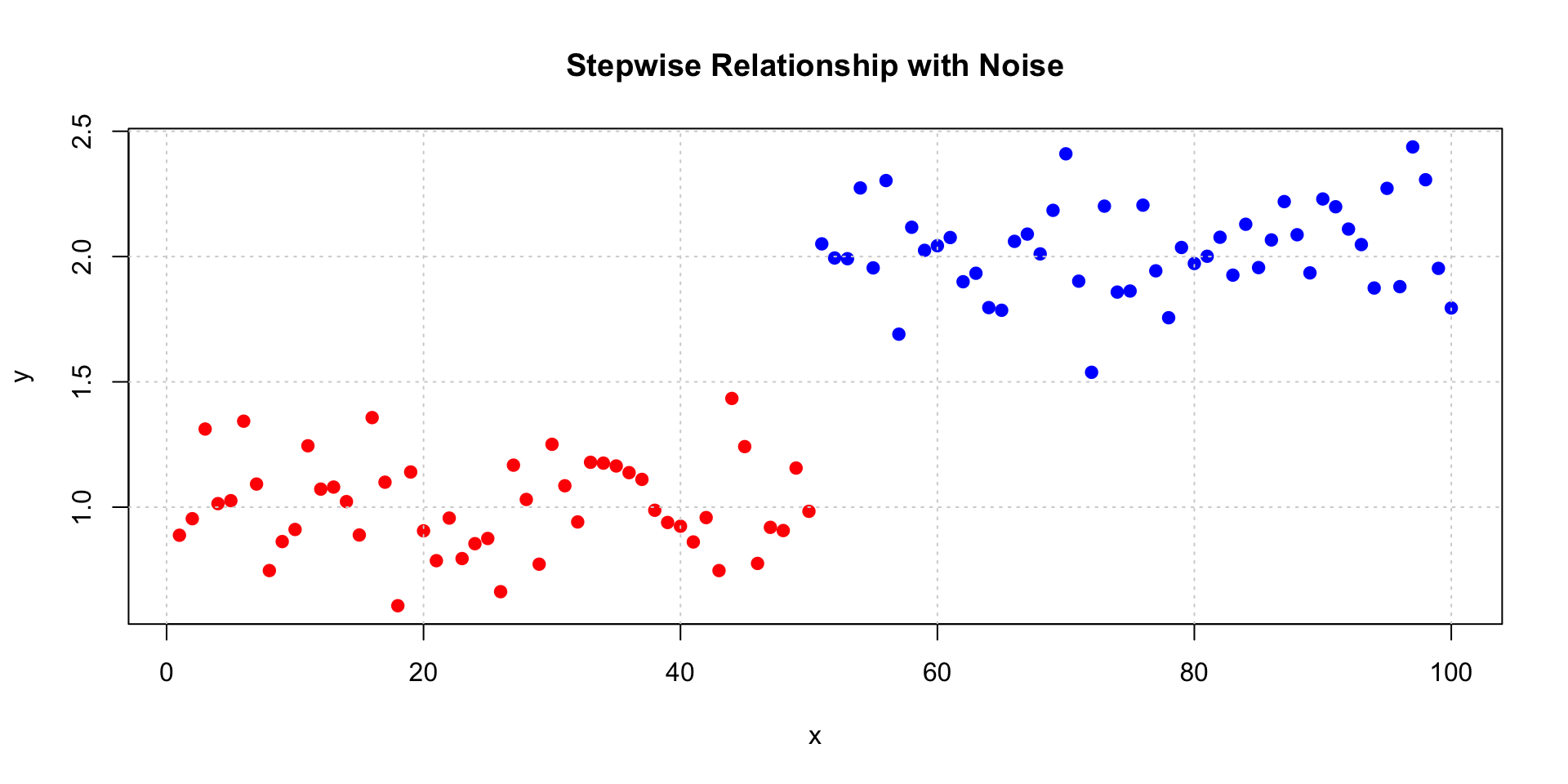 ใช้วัดได้เฉพาะความสัมพันธ์เชิงเส้นเท่านั้น สหสัมพันธ์เพียร์สันใช้ได้เฉพาะเมื่อความสัมพันธ์ระหว่างตัวแปรเป็นแบบ เชิงเส้น (linear) หากความสัมพันธ์เป็นแบบไม่เชิงเส้น ค่า \(r\) อาจให้ผลลวงว่าไม่มีความสัมพันธ์