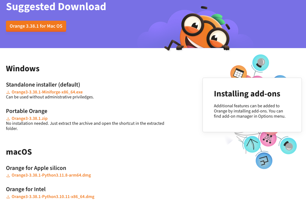 Orange เป็นโปรแกรมโอเพนซอร์ส (Open Source) ใช้งานได้ฟรี