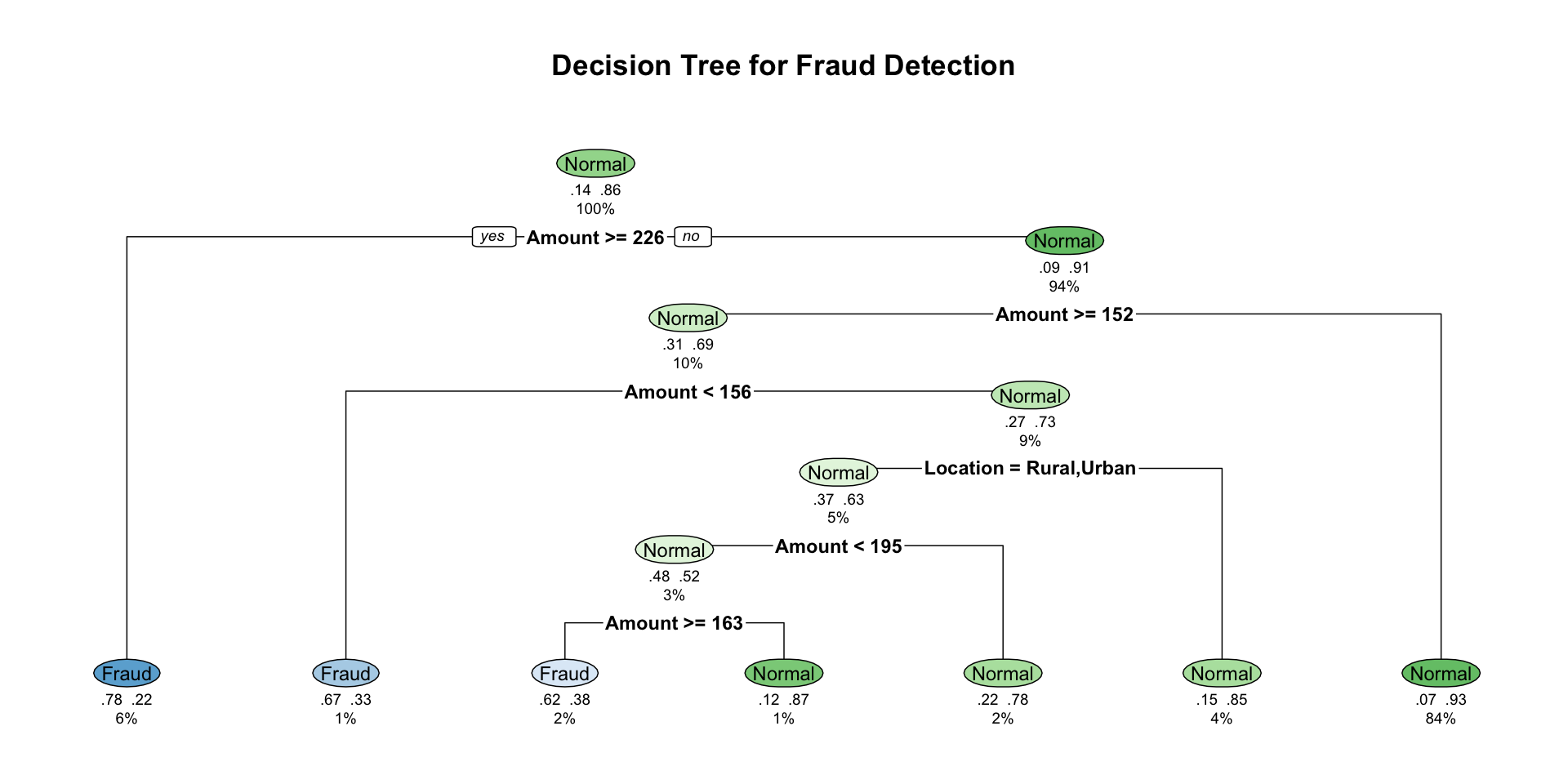 Amount ≥ 226ธุรกรรมมี Amount = 180 และ Location = Rural โมเดลจะทำนายว่าอย่างไร?