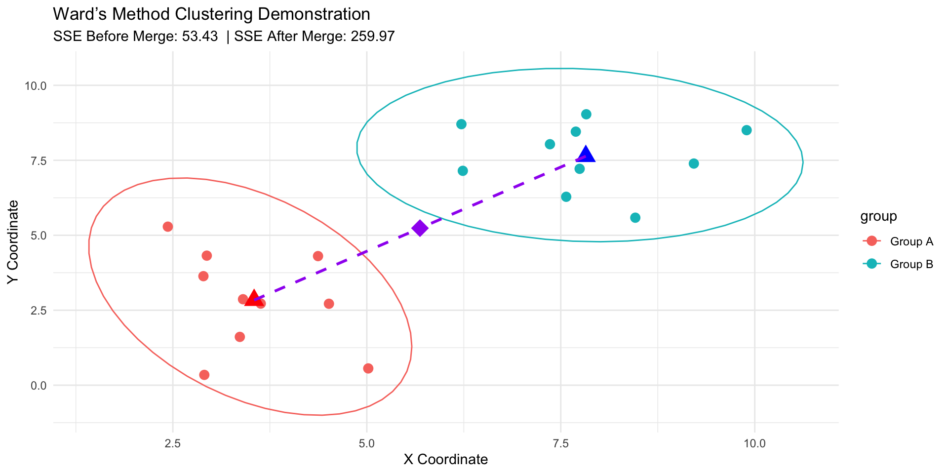 note.innerHTML = `แสดงตัวเลขการคำนวณใน scatter: single/complete → d, average → avg, centroid → ‖cₐ−c_b‖, ward → ΔSSE.`;