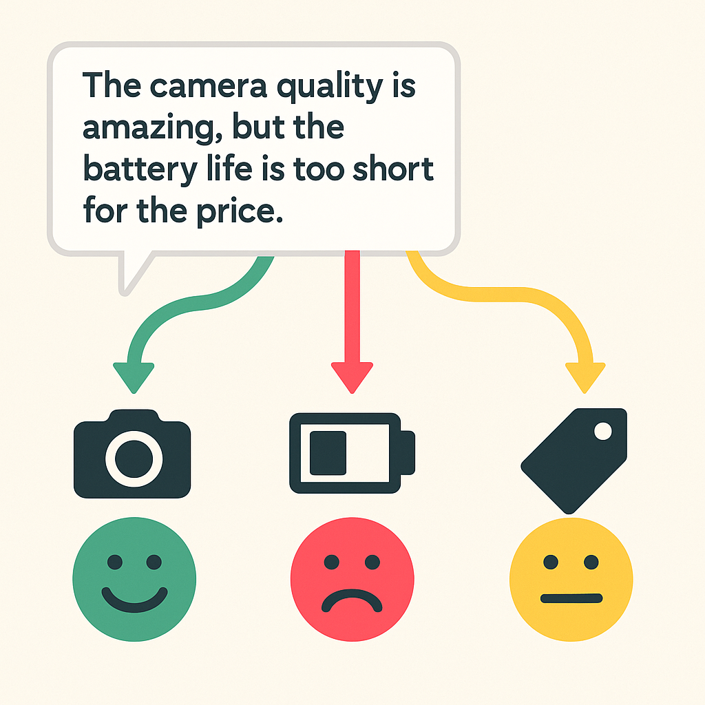 การวิเคราะห์แบบนี้จะมองหา แง่มุมหรือคุณลักษณะเฉพาะของสินค้า/บริการ เพื่อระบุว่าอารมณ์ในข้อความนั้นเกี่ยวข้องกับส่วนใดของสินค้า