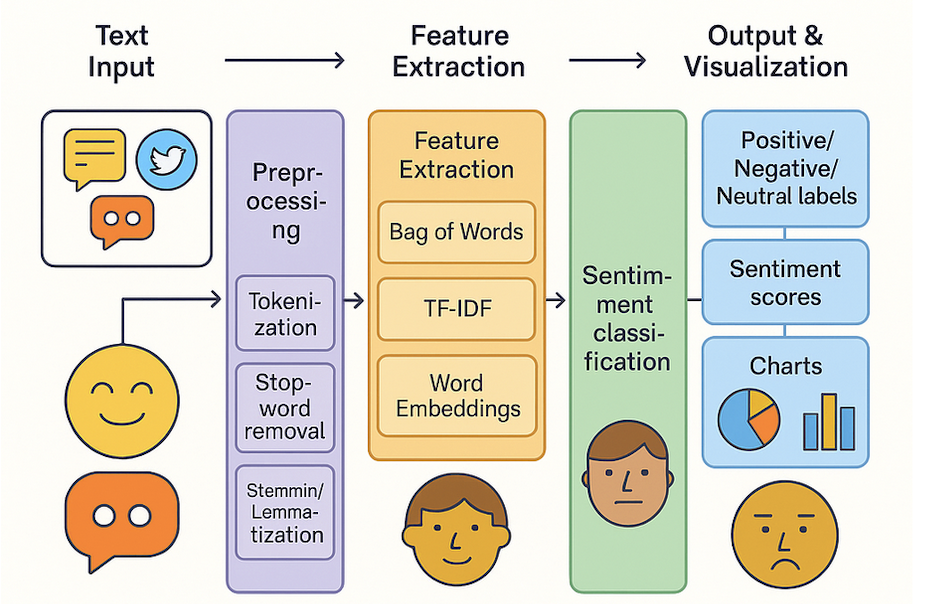 การเตรียมข้อความ (Text Preprocessing) → การตัดคำ (Tokenization), การทำรากคำ (Stemming), การทำ Lemmatization, การลบคำหยุด (Stop-word Removal)