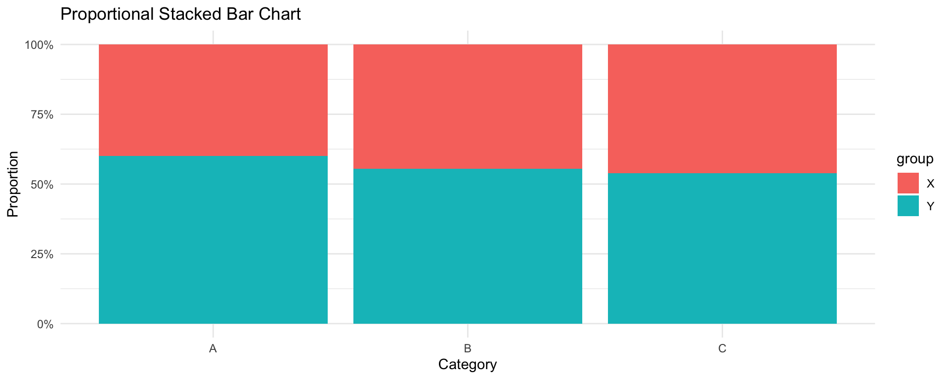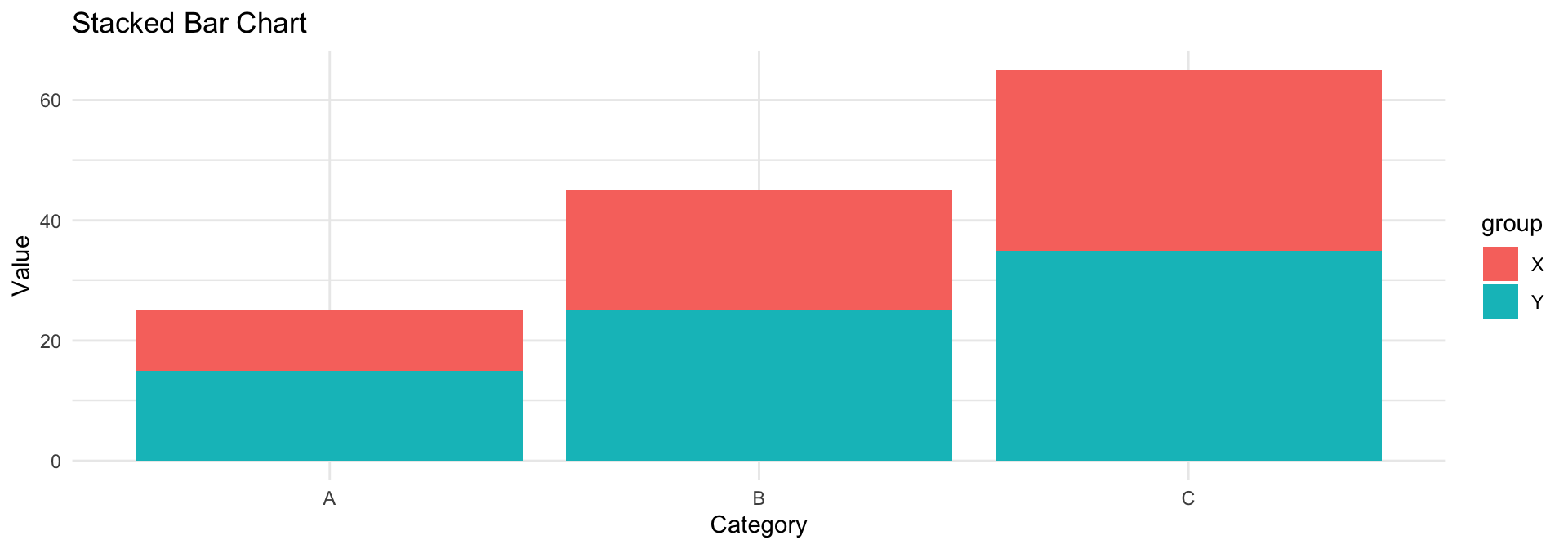 กราฟแท่งซ้อน (Stacked Bar Chart): ใช้แสดงส่วนประกอบของข้อมูลรวม เช่น ส่วนแบ่งทางการตลาดของแต่ละบริษัท