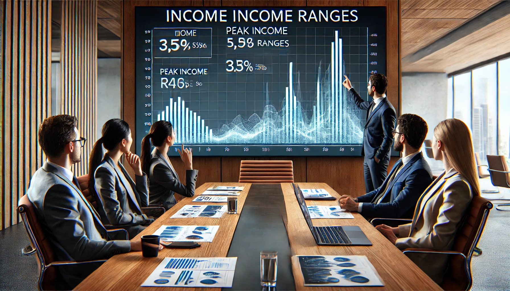 ฮิสโตแกรม (Histogram): แสดงการกระจายของค่าตัวแปร เช่น รายได้ของประชากร