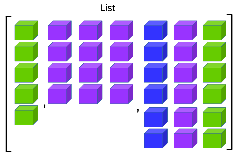 ลิสต์ (list): เป็นโครงสร้างข้อมูลที่เก็บค่าที่ไม่จำเป็นต้องเป็นประเภทเดียวกัน โดยสามารถเก็บอ็อบเจ็กต์หรือข้อมูลประเภทอื่น ๆ ภายในลิสต์ได้