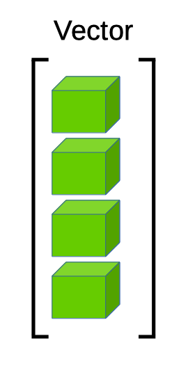 เวกเตอร์ (vector): เป็นโครงสร้างข้อมูลที่เก็บค่าของประเภทเดียวกัน ตั้งแต่ 1 ตัวขึ้นไป