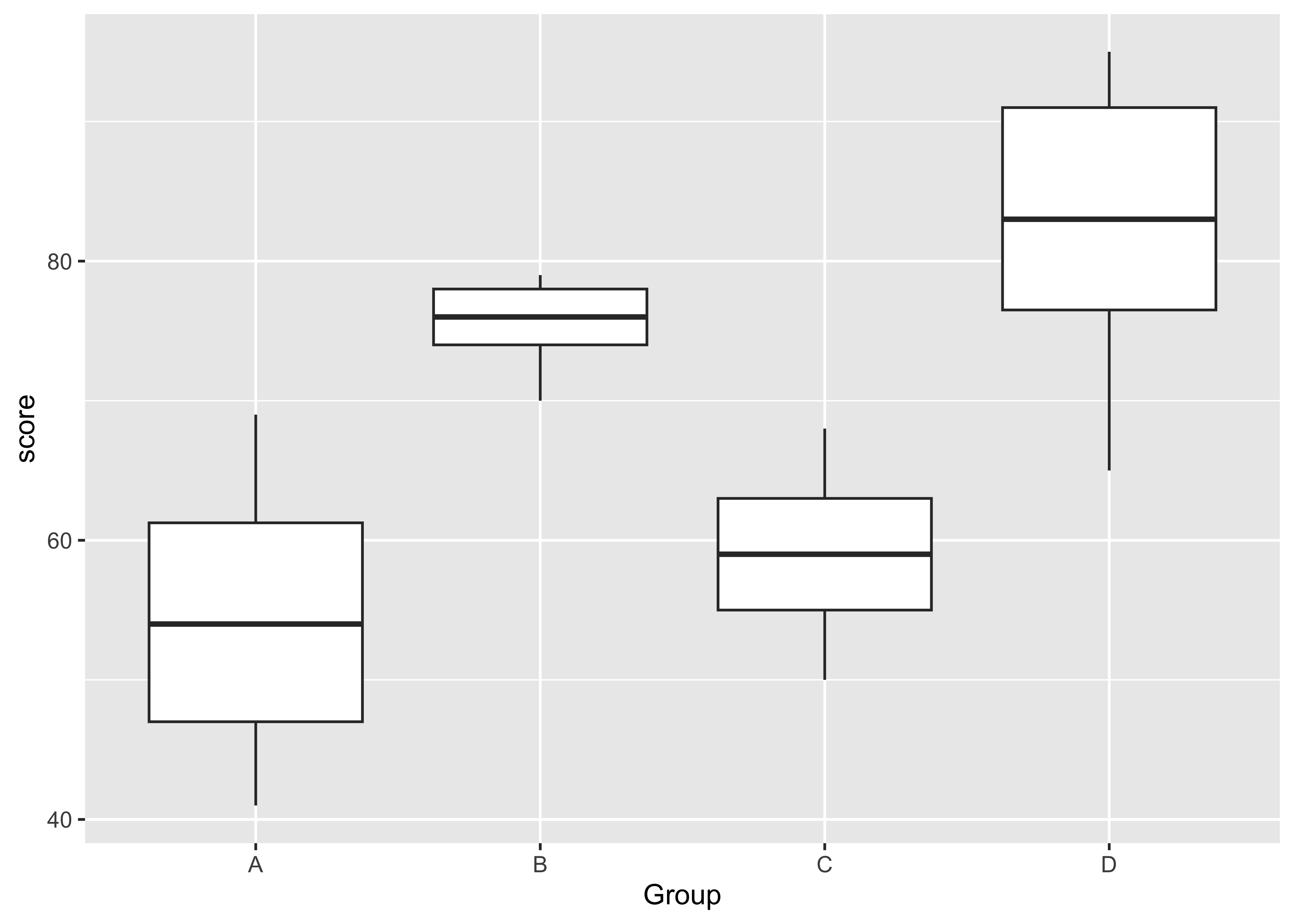 str(group) Factor w/ 4 levels "A","B","C","D": 1 1 1 1 1 1 1 1 1 1 ...