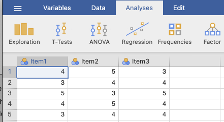 ขั้นที่ 1 นำเข้าไฟล์ Cronbach.xlsx สู่ jamovi