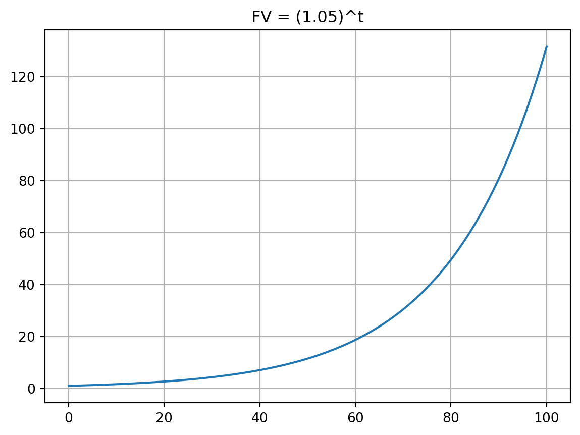 plt.title('FV = (1.05)^t')