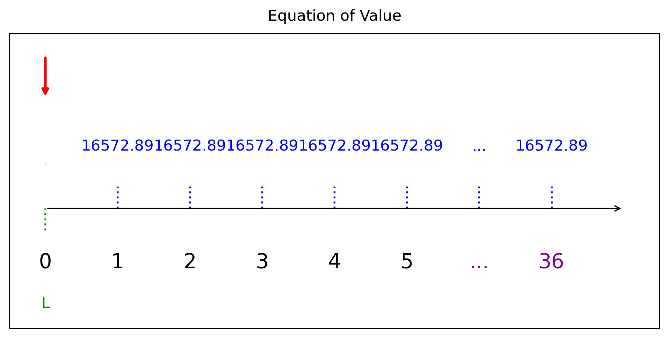 สมการแห่งมูลค่าคือ \[L=16572.89\cdot a_{\overline{36}|i}\]
