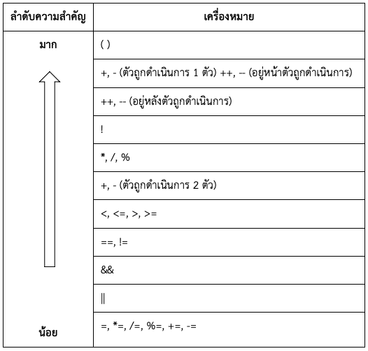 เพื่อให้เข้าใจลำดับความสำคัญของตัวดำเนินการ